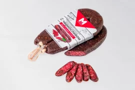 Состав: свинина. говядина, комплексная пищевая добавка, мед натуральный, чеснок, стартовая культура. Может содержать следы сои, лактозы, горчицы, сельдерея, глютена.