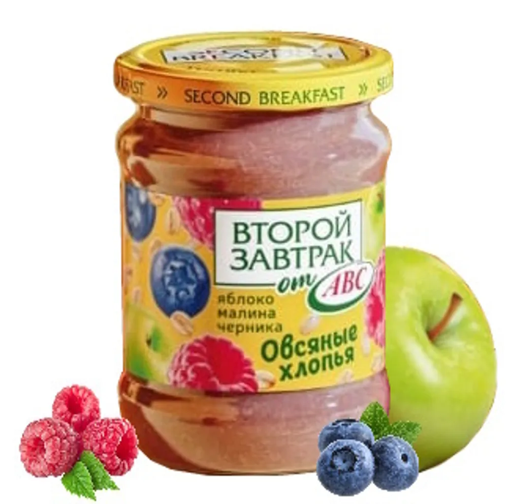 Десерт фруктовый из яблок, малины и черники с овсяными хлопьями 250 г ст/б (Второй завтрак)