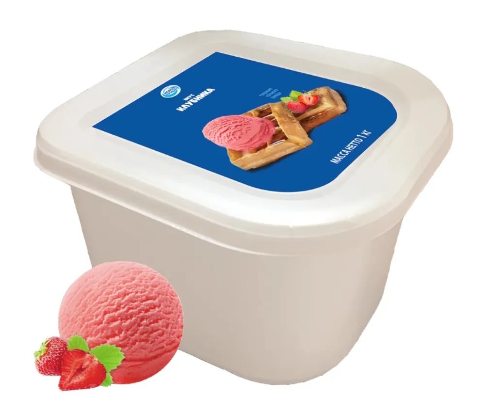 Лоток 1000 гр Сливочное Клубничное с джемом 8% (Морозпродукт)