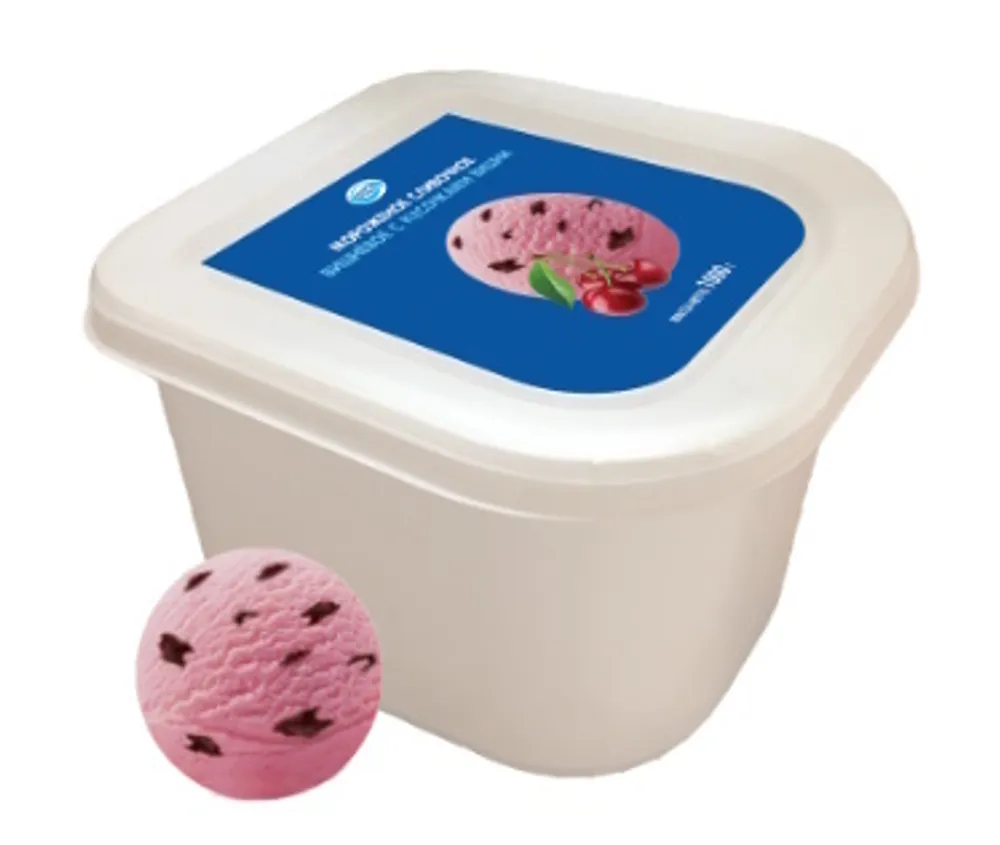 Лоток 1000 гр Сливочное Вишневое с кусочками вишни 8% БЗМЖ (Морозпродукт)